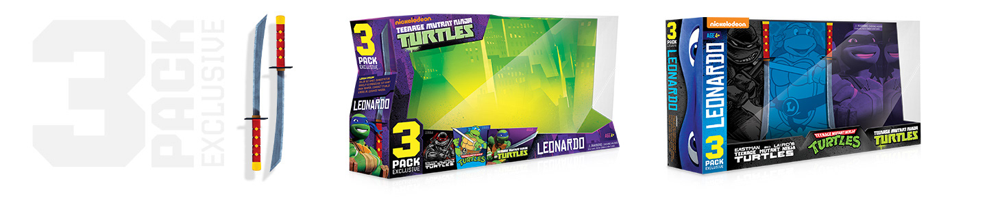 2014 was the 30th anniversary of TMNT and to help commemorate it, Nickelodeon asked us to design a three pack open box, showcasing three different generations of Leonardo from TMNT.